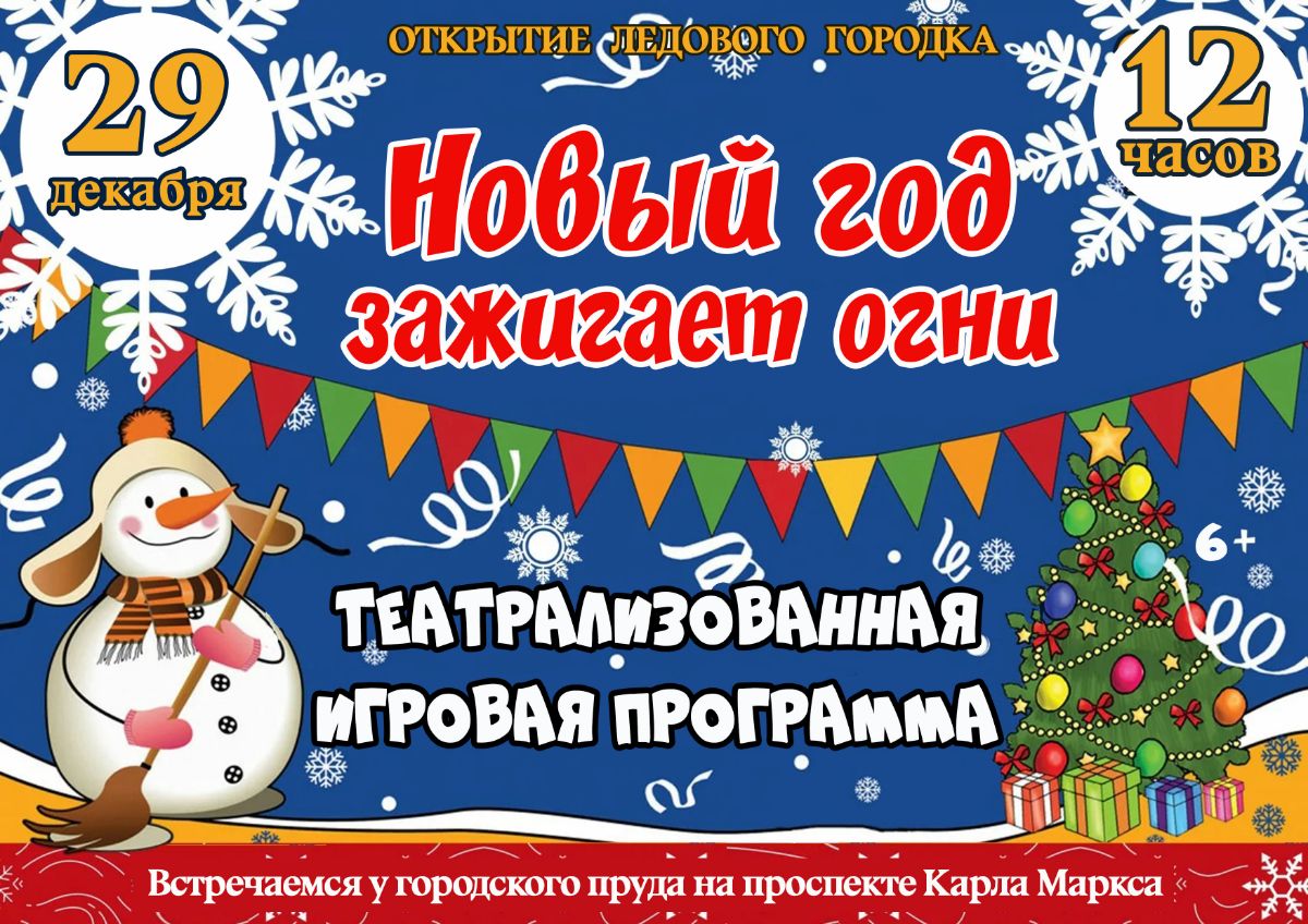 29 декабря в 12:00 мы ждем вас возле городского пруда по проспекту Карла Маркса на открытие Ледового городка.
