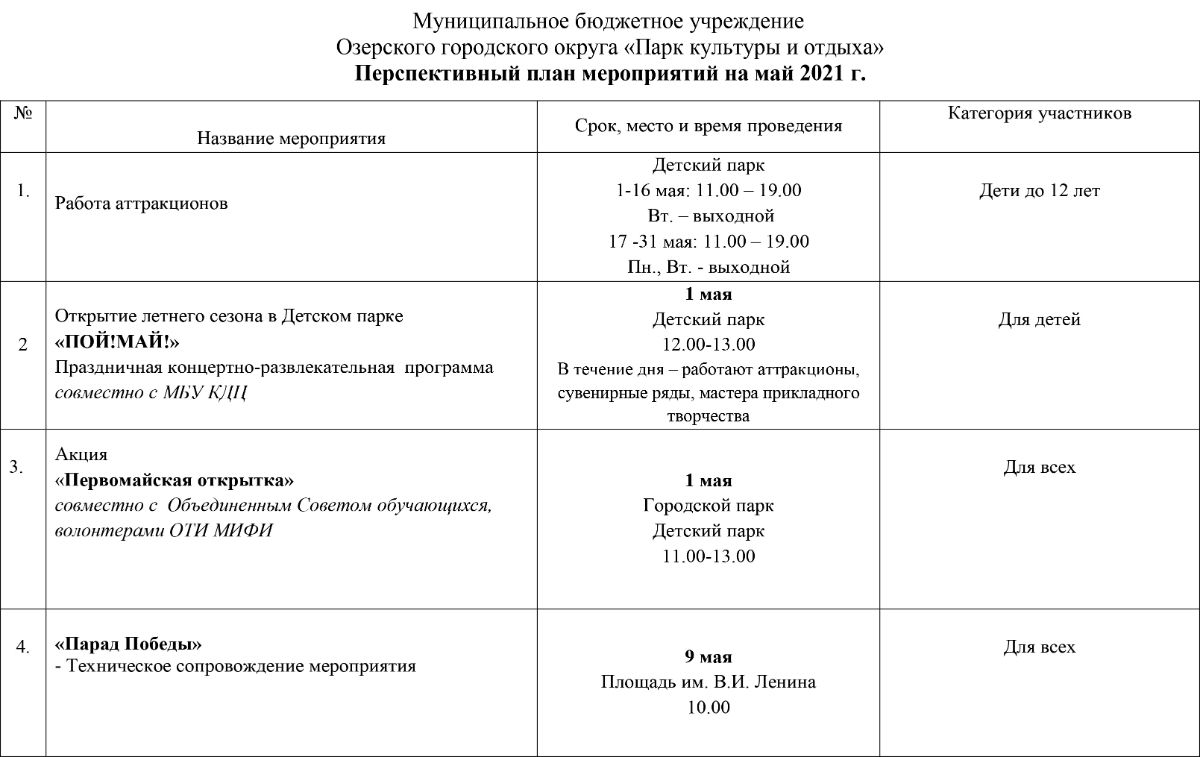 График работы Детского парка в марте 2021г.